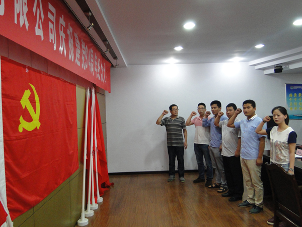 然后舉行了莊嚴(yán)的新黨員入黨宣誓儀式,在黨群監(jiān)審部部長(zhǎng)華崢帶領(lǐng)下,新入黨的劉歡、張文斌、高政偉、程博興、石福旭五位同志和與會(huì)的所有老黨員、入黨積極分子一起在黨旗下莊嚴(yán)宣誓,新黨員代表高政偉做了表態(tài)發(fā)言。