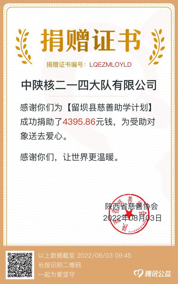 本次活動的幫扶對象是集團定點幫扶的留壩縣慈善協(xié)會策劃的“留壩縣慈善助學(xué)計劃”項目,善款極大助力留壩縣貧困學(xué)子完成學(xué)業(yè),實現(xiàn)大學(xué)夢的美好夙愿。