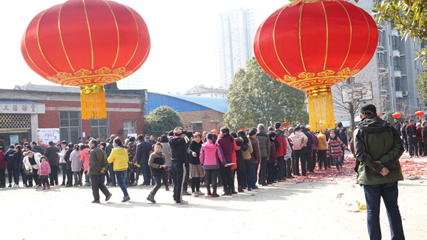 下午1:58,歡慶鑼鼓拉開了活動的序幕,緊隨著煙花炮竹齊鳴,耀眼的禮花在天空中呈現著不同的形狀,觀看的人群不時爆發出陣陣歡呼聲。