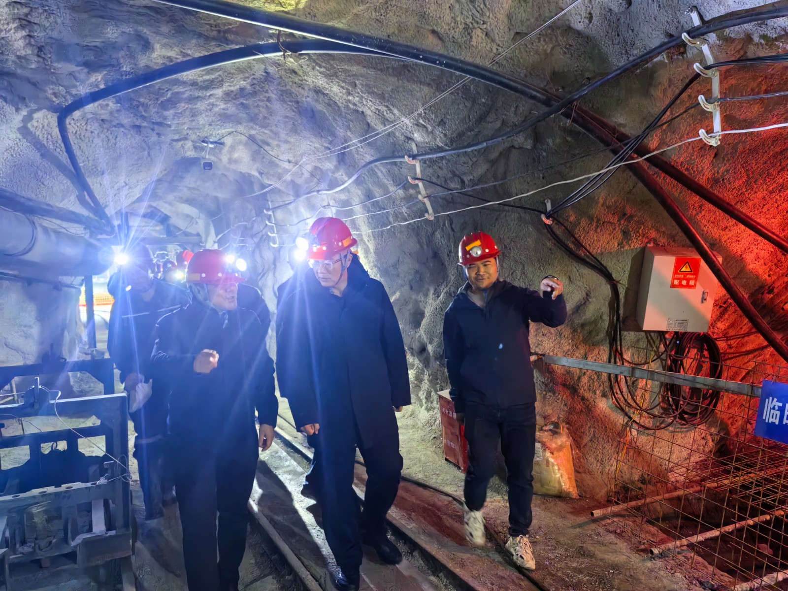 范明一行首先聽取了項目負(fù)責(zé)人對項目成果、工作進(jìn)展的詳細(xì)匯報。隨后,深入井下前往斜井670硐探工程,實地檢查施工質(zhì)量和安全管理等情況。郭建軍、白曉剛、陳金錄分別從安全施工、工作部署、礦山建設(shè)等方面,結(jié)合從業(yè)經(jīng)驗,提出了寶貴的建設(shè)性意見。