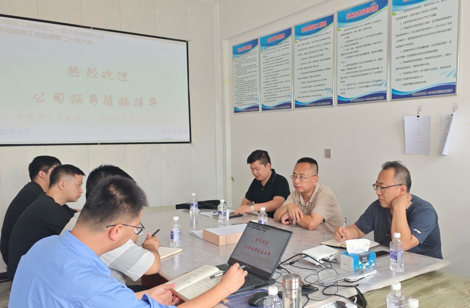慰問結(jié)束后,付星一行與項(xiàng)目部人員召開座談會(huì)。會(huì)上,付星宣講了公司改革的核心政策,詳細(xì)闡述了公司未來的戰(zhàn)略規(guī)劃和發(fā)展方向,鼓勵(lì)項(xiàng)目部全體人員把握發(fā)展機(jī)遇,在實(shí)干中實(shí)現(xiàn)個(gè)人與企業(yè)的共同成長。隨后,項(xiàng)目部負(fù)責(zé)人從項(xiàng)目進(jìn)度、人員培訓(xùn)、安全生產(chǎn)、質(zhì)量管控等方面作了詳細(xì)匯報(bào)。付星對(duì)項(xiàng)目部前期工作取得的成效給予了充分肯定,同時(shí)針對(duì)項(xiàng)目當(dāng)前面臨的問題和挑戰(zhàn)提出了指導(dǎo)意見:一是以精益化管理為目標(biāo),完善項(xiàng)目部的建設(shè);二是要細(xì)化工作,完成各個(gè)工作步驟的流程圖;三是以成果為導(dǎo)向,推進(jìn)項(xiàng)目進(jìn)展。