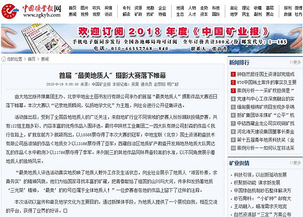 近日,在中國大地出版傳媒集團、地質出版社所屬北京中地金土圖書發行有限公司舉辦的“最美地質人”攝影作品評選活動中,公司彭森的作品《我行在路上,礦就在前方》,經過激烈的投票評選,最終脫穎而出,以15568票奪得了本次大賽的冠軍。