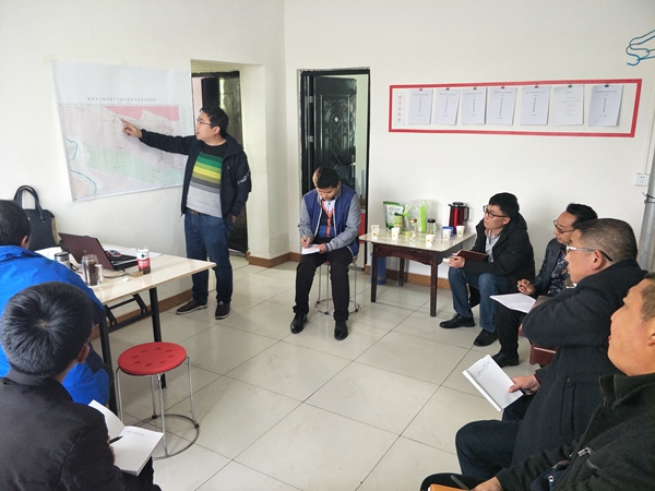 王義忠一行到達項目部后,首先聽取了項目人員對該區工作進展情況的匯報,共同探討了項目找礦遇到的技術難題,就下一步如何開展工作,快速實現找礦突破進行了交流。第二天,帶項目組人員一起深入野外現場進行仔細查看研究,在工作區內發現了有利的近南北向控礦構造,為該項目下一步找礦方向提供了有利線索,通過追索對比研究分析,打破了以往的認識,重新確定了項目下一步工作思路。