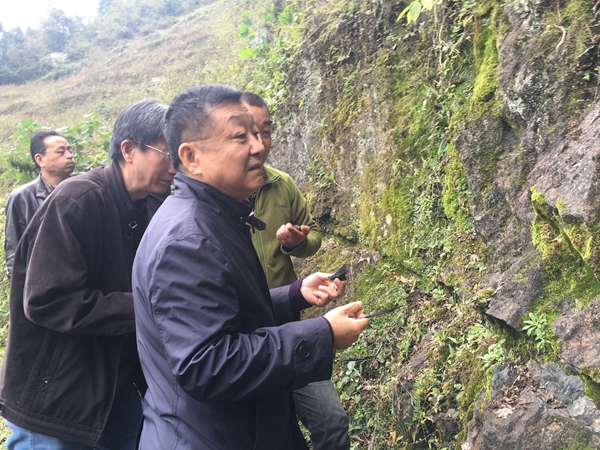 在陜西省寧強縣中壩寨子灣-王家灣地區金銀多金屬礦預查項目,茍潤祥院長一行對照圖件對MnⅡ號礦化帶的基本情況進行了解,實地詳細的觀察,與項目技術人員就礦體的類型及特征進行了探討交流,就區內錳、金礦找礦下步工作思路提出了建議。