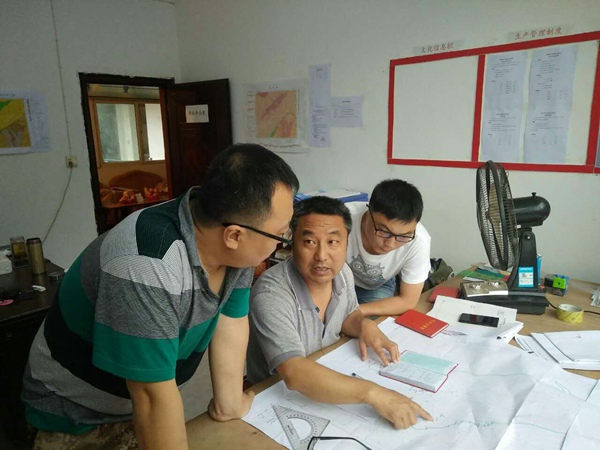 總工辦主任涂宏在項目部認真聽取了技術負責對項目進展情況的匯報后,隨后對項目組技術資料進行細致入微的檢查,從地質點的描述、槽探編錄圖、剖面資料等都一一檢查,并對資料中出現的問題,進行認真分析,與項目部人員進行交流,給出了中肯的建議。要求項目組技術資料一定要和省基金辦要求的保持一致,而且要有長遠規劃。