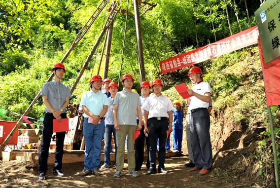 在城固縣北部的北山鉆孔(ZK0701)施工現場,二一四大隊有限公司隆重舉行“陜西省勉縣-城固縣北部晶質石墨找礦會戰”開工儀式。出席開工儀式的有漢中市國土局黨組成員、副局長趙安國,城固縣人民政府副縣長榮江,城固縣國土局局長陳珂熠、副局長亢宇峰、中陜核工業集團二一四大隊有限公司總工程師王義忠、地礦六隊總工程師白和和。會戰儀式由二一四大隊有限公司副總經理司金強主持。