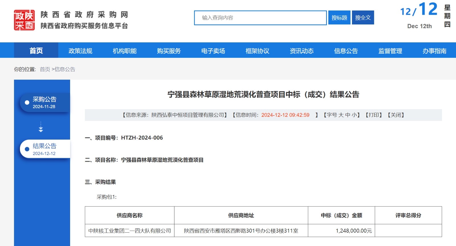近日,公司憑借卓越的專業實力以及完善的項目方案,在眾多競爭對手中脫穎而出,成功中標寧強縣森林草原濕地荒漠化普查項目。